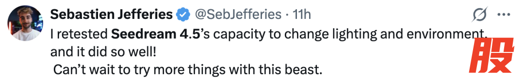 有网友反馈Seedream 4.5的光影与环境调整能力表现十分出色: