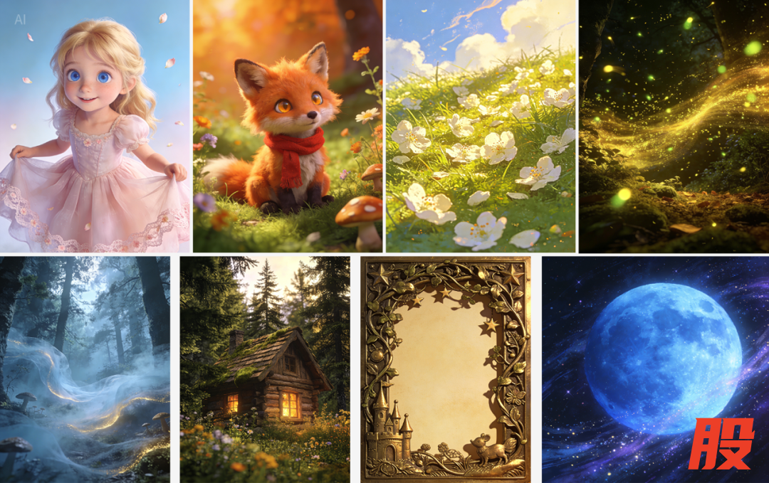 在官方展示中,输入8张参考图,并指定画面布局后,让它生成图画故事书封面: