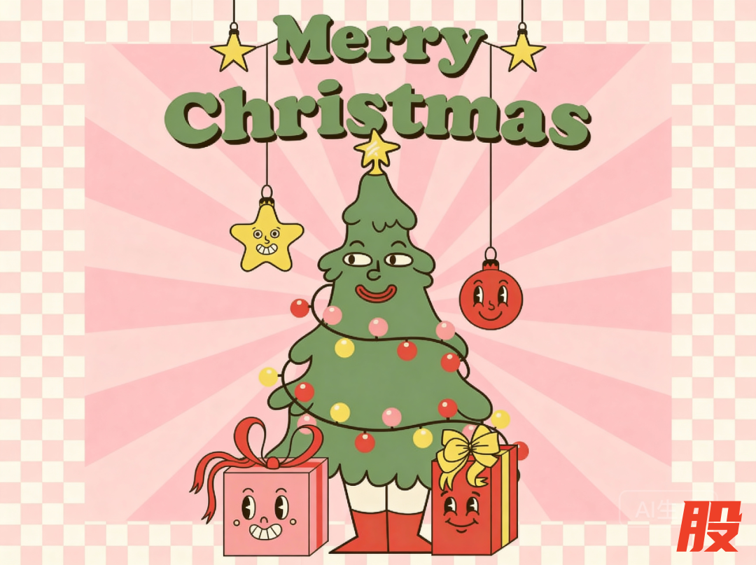 将几张图中元素融合到一张图中生成一张圣诞海报,画面主体是一颗大圣诞树,圣诞树下面摆放着礼物,海报上方写着“Merry Christmas”,字上要挂上小星星、气球装饰。